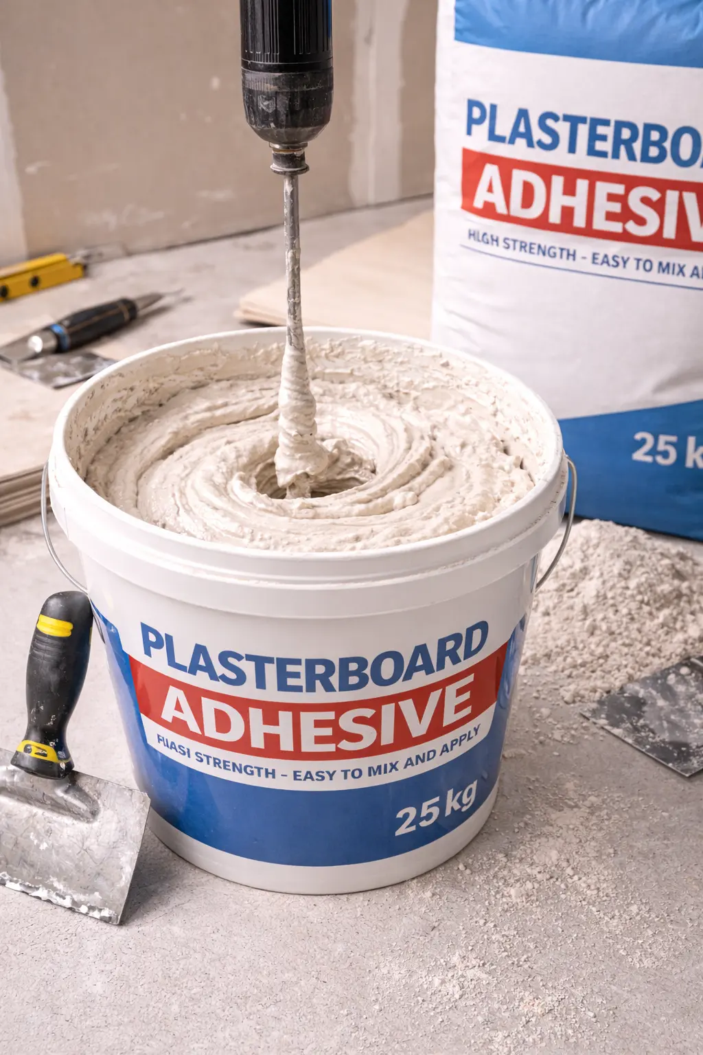 This category usually includes setting compounds, topping compounds, adhesives, and related finishing materials for plasterboard systems.
